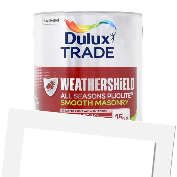Dulux Trade Weathershield All Seasons Pliolite is a flexible finish designed to be applied in all seasons on exterior walls. The masonry paint can give up to 15 years lasting protection and is suitable to apply in difficult weather conditions. With unique NAD technology, the product dries quickly with faster recoat times. It can withstand rainfall after only 15 minutes of application and easy to apply in cold weather conditions. The solvent-based paint has excellent opacity, contains fungicides to inhibit mould growth and is not prone to yellowing.
