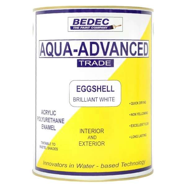 Bedec Aqua-Advanced Eggshell is ideal for both interior and exterior surfaces. Quick drying product with excellent flow and long lasting improved non-yellowing formula.