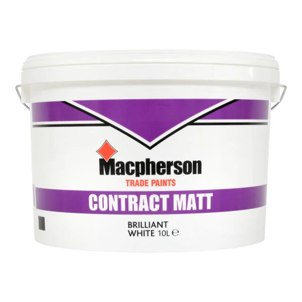 Macpherson Contract Matt is a low VOC content matt finish. It is a product which is thinned with water and is suitable for interior use. It is touch dry in 2 hours and recoatable after 4 hours. Matt emulsion is a decorative coating providing a flat finish for use on walls and ceilings. It can be applied to coated plaster surfaces without thinning. On new plaster, thin the first coat with water to manufacturers recommendations.
