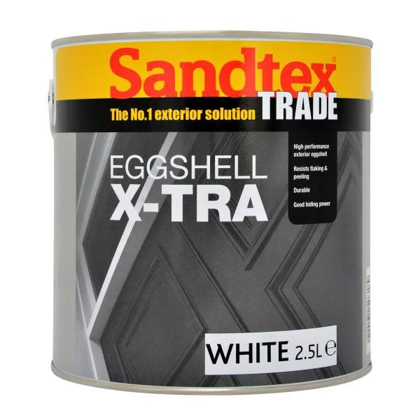 Sandtex Trade Eggshell is a tough, durable low sheen finish for wood and metal. Can be applied over most previously painted surfaces without an undercoat. On new surfaces apply over the top of a suitable primer. High performance eggshell which is suitable for exterior use and resists flaking & peeling, this product has good hiding power as well as being durable.