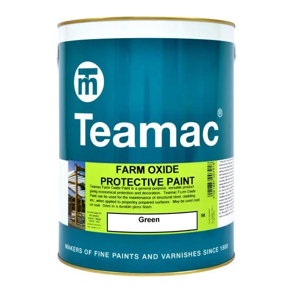 Teamac Farm Oxide Paint is a general purpose coating for the protection of exterior metal. Ideal for the maintenance or structural steel and cladding. Suitable applied coat on coat to properly prepared surfaces.Â