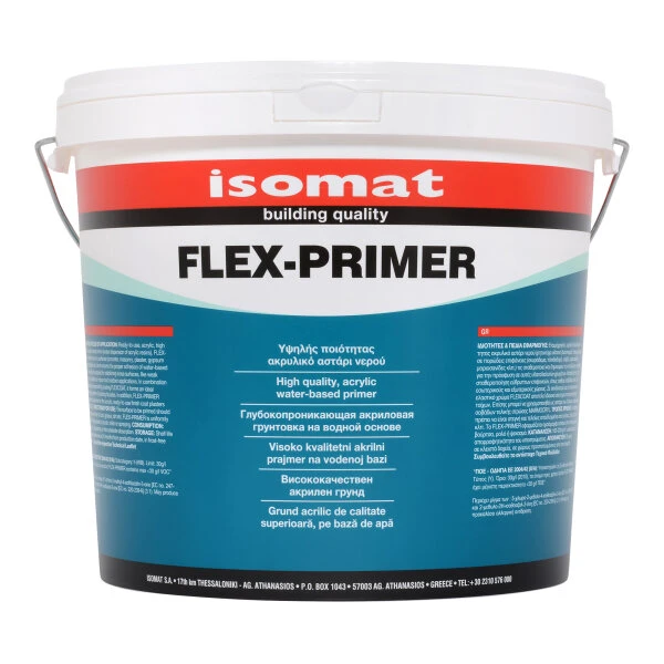 Isomat Flex-Primer is a highly quality, acrylic, water-based primer. It is a ready-to-use primer which is highly penetrative and stabilises porous substates. Suitable for ensuring the adhesion of water-based paints and acrylic renders on porous substrates made of concrete, masonry, render, gypsum boards, chipboards, etc. It is suitable for indoor and outdoor applications.