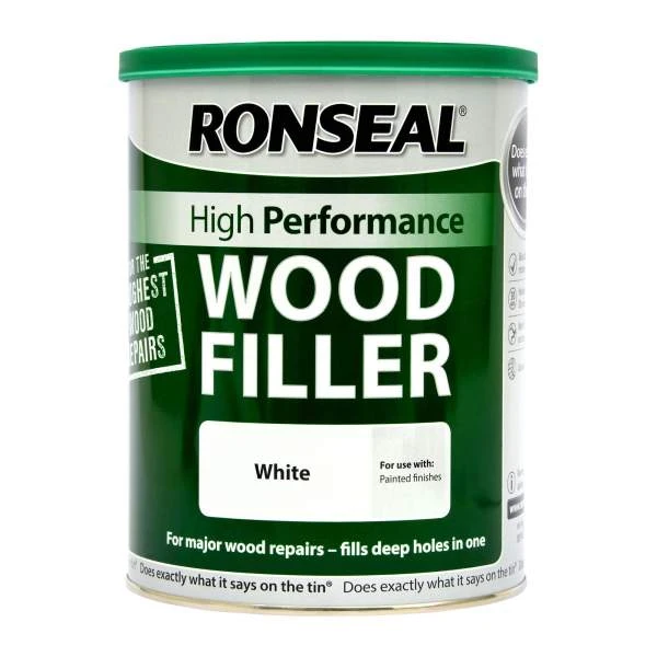 Ronseal High Performance Wood Filler is for repairing all woods both interior and exterior. 2-part formula that can be used to fill any depth and dries solid in 30 minutes. Once dry it can be sanded, planed, filed, screwed or nailed. It can be painted, stained or varnished.Â