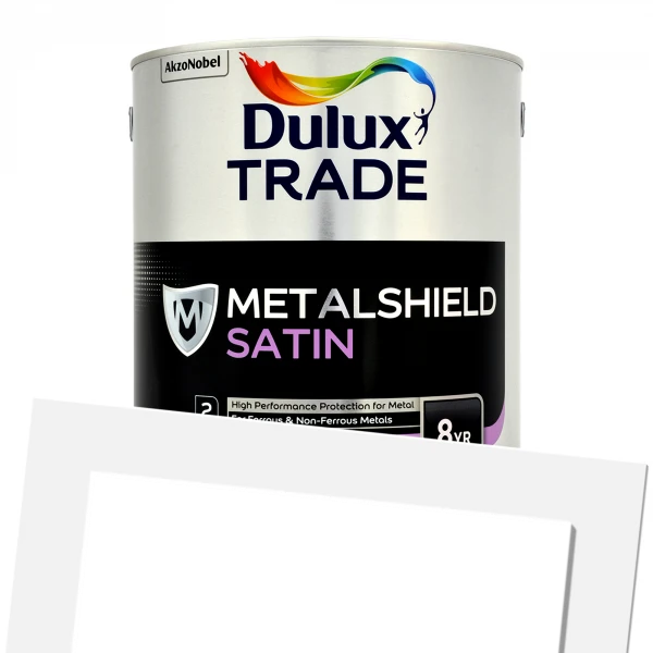 Dulux Trade Metalshield Satin is a high performance, corrosion resistant coating for interior and exterior ferrous and non-ferrous metal surfaces. Quick drying formulation means it can be overcoated within 4-6 hours.Â