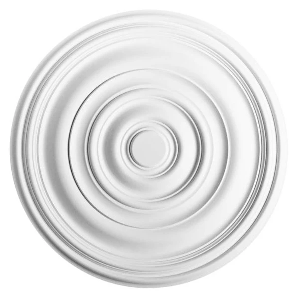 A large ceiling rose with concentric rings. This design works well in contemporary properties but it was also a popular in Victorian area. For a larger sized properties.