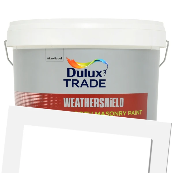 Dulux Weathershield Smooth Masonry paint suitable for exterior use. Touch dry in 30 minutes and recoatable after 2-4 hours.Â